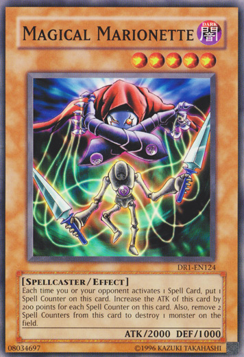 Each time you or your opponent activates 1 Spell Card, put 1 Spell Counter on this card. Increase the ATK of this card by 200 points for each Spell Counter on the card. Also, remove 2 Spell Counters from this card to destroy 1 monster on the field.