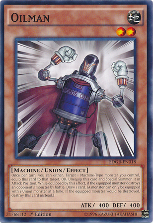 Once per turn, you can either: Target 1 Machine-Type monster you control: equip this card to that target, OR: Unequip this card an Special Summon it in Attack Position. While equiped by this effect, if the equipped monster destroys an opponent's monster by battle. Draw 1 card. (A monster can only be equipped with 1 Union monster at a time. If the equipped monster would be destroyed, destroy this card instead.)