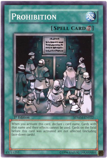 When you activate this card, declare 1 card name. Cards with that name and their effects cannot be used. Cards on the field before this card was activated are not affected (including face-down cards).