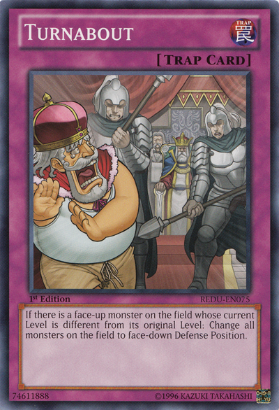 If there is a face-up monster on the field whose Level is different from its original Level: Change all monsters on the field to face-down Defense Position.