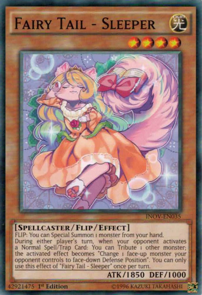 During either player's turn, when your opponent activates a Normal Spell/Trap Card: You can Tribute 1 other monster; the activated effect becomes "Change 1 face-up monster your opponent controls to face-down Defense Position". You can only use this effect of "Fairy Tail - Sleeper" once per turn.