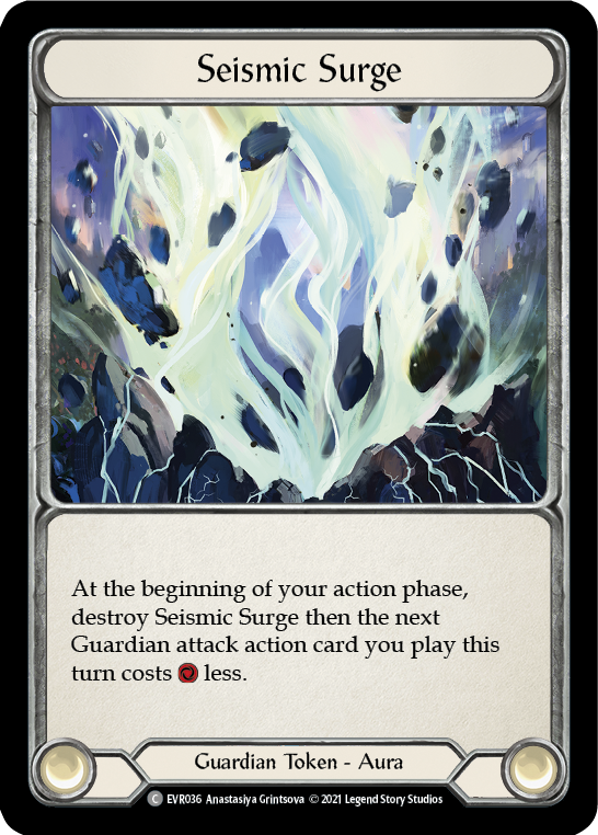 At the beginning of your action phase, destroy Seismic Surge then the next Guardian attack action card you play this turn cost [Resource] less.