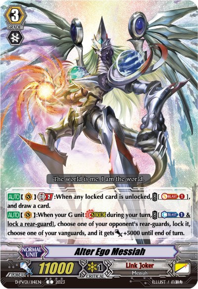 [AUTO](VC):When your G unit [Stride] during your turn, [COST][Counter-Blast 1 & lock a rear-guard], choose one of your opponent's rear-guards, lock it, choose one of your vanguards, and it gets [Power] +5000 until end of turn.