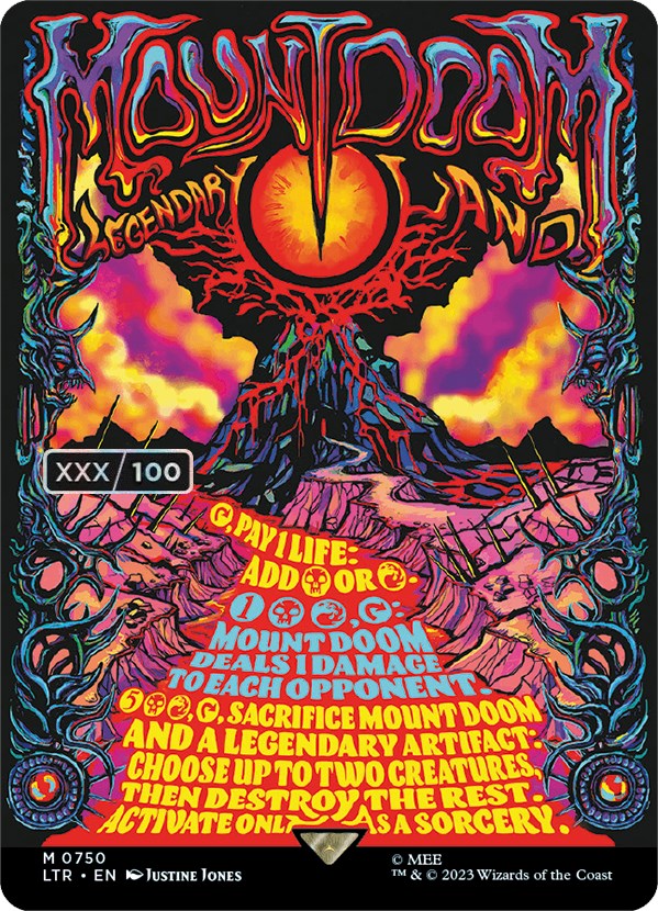 {5}{B}{R}, {T}, Sacrifice Mount Doom and a legendary artifact: Choose up to two creatures, then destroy the rest. Activate only as a sorcery.