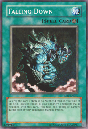 Destroy this card if there is no Archfiend card on your side of the field. Take control of 1 of your opponent's monsters that is equipped with this card. You take 800 points of damage during each of your opponent's Standby Phases.